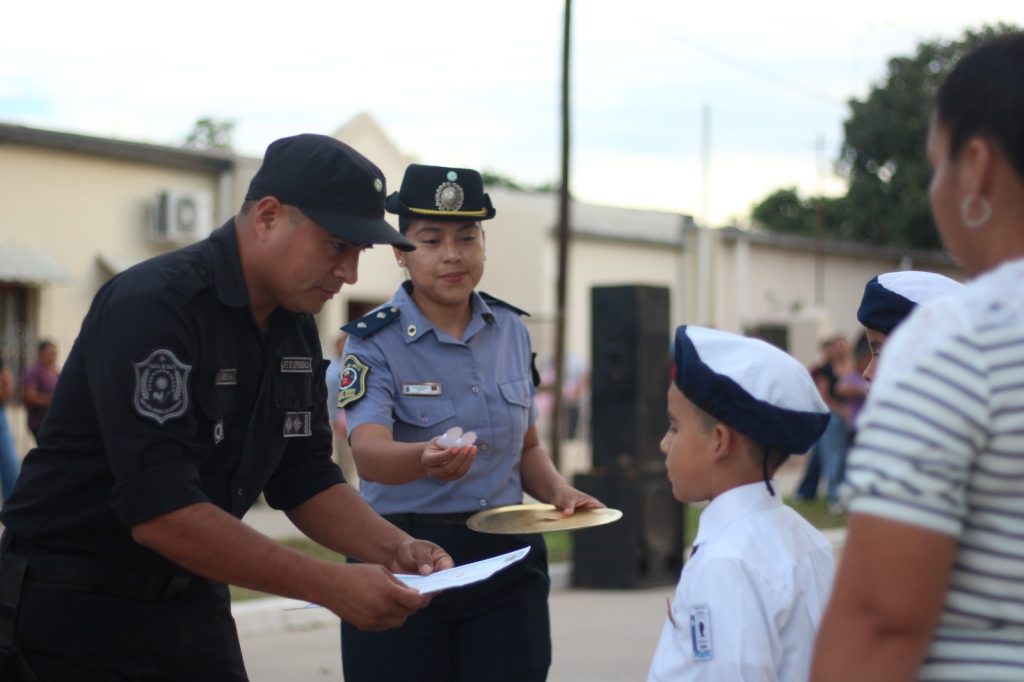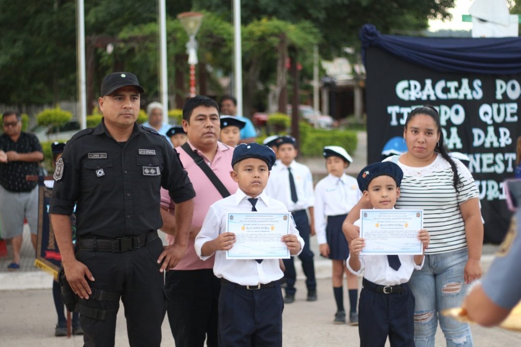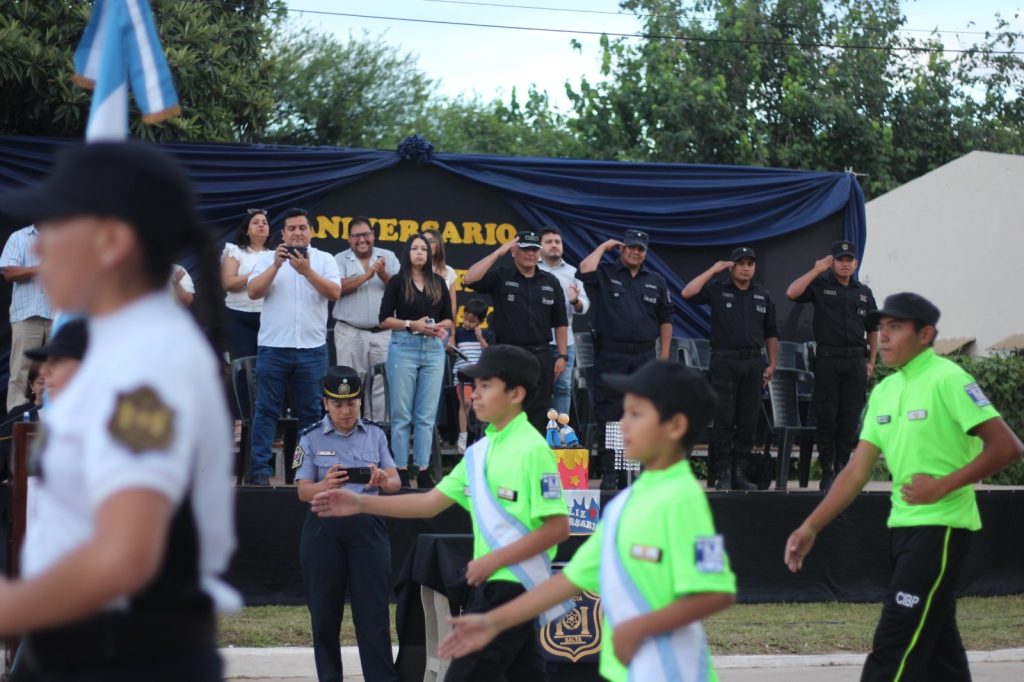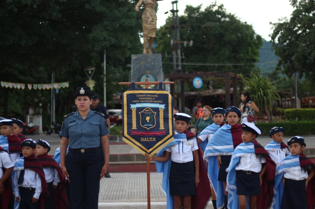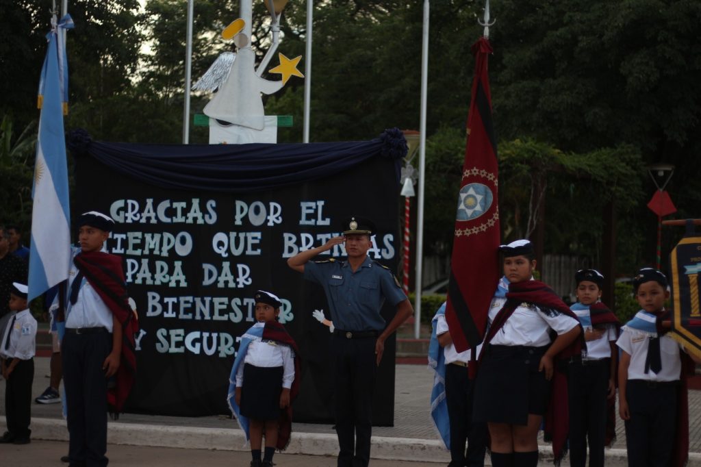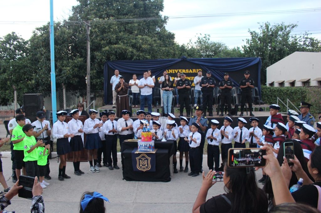 La conmemoración incluyó un acto protocolar y desfile, desarrollados en inmediaciones de la Plazoleta Eva Perón, donde se destacó la importancia de la formación en valores, disciplina y compromiso desde la infancia.