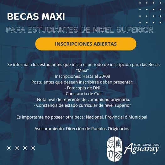 Se informa a los estudiantes de nivel superior, que inició el periodo de inscripción para las “Becas Maxi” el mismo finaliza el 30 de agosto.