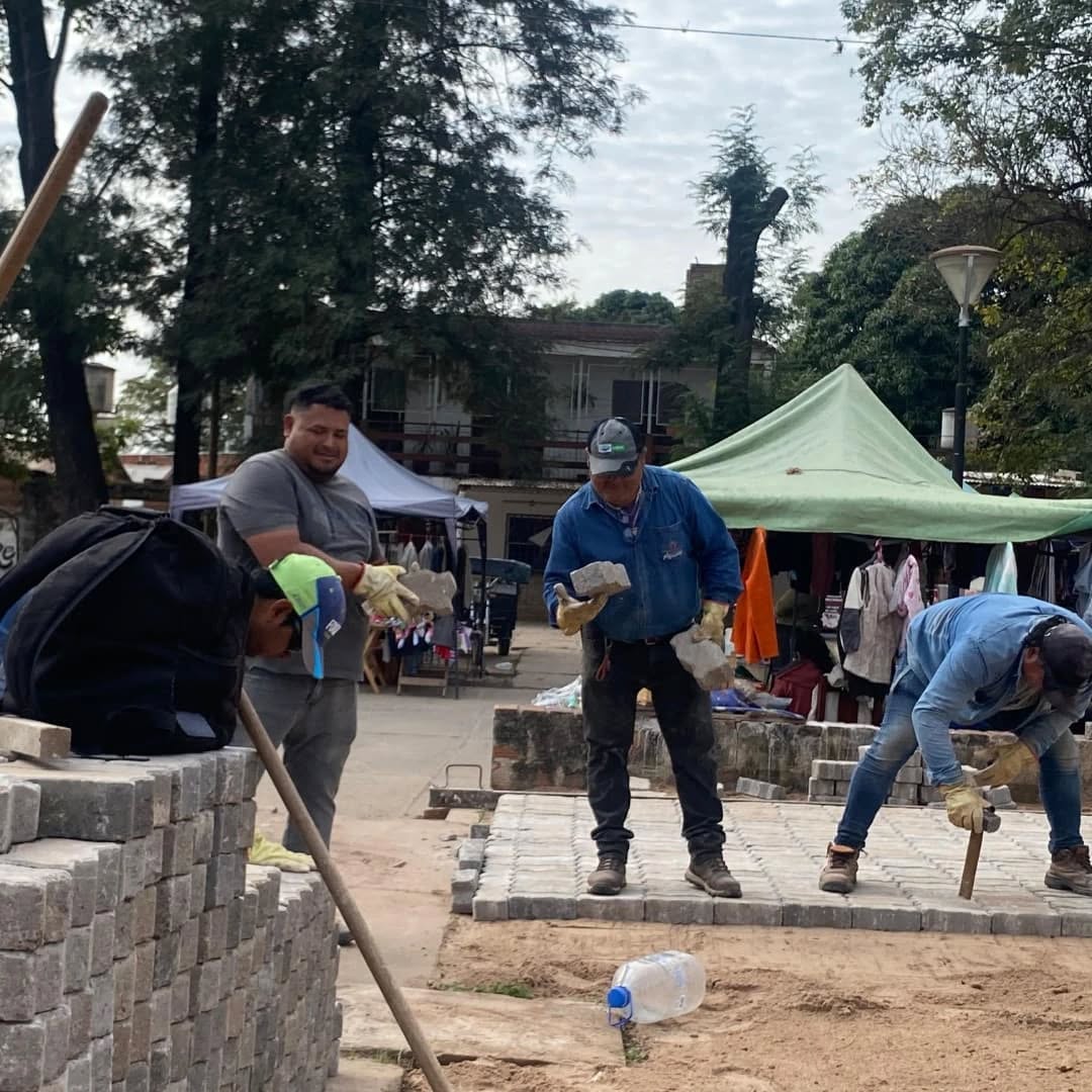 Personal municipal, avanza con las tareas previstas en el Paseo de la Comida, llevando adelante la segunda etapa de colocación de adoquinado, embelleciendo este sector tan concurrido por los vecinos.