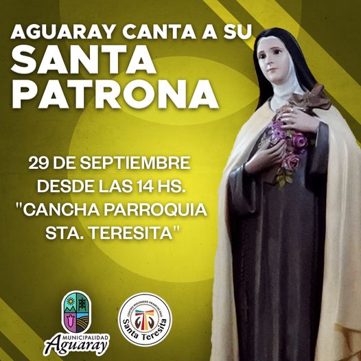 Este 29 de Septiembre desde las 14 hs. todos juntos honraremos a nuestra patrona Santa Teresita con la mejor musica y danza, el lugar será la Cancha de la Parroquia.
