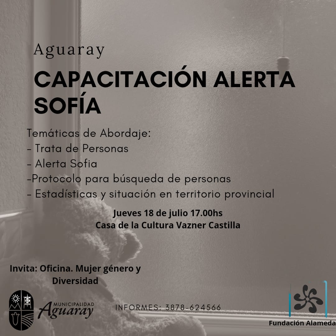 La Oficina de la Mujer Género y Diversidad invita a la población a participar de una capacitación gratuita sobre trata de personas y protocolos de acción enmarcados ante la desaparición de personas. Esta actividad es coordinada conjuntamente con la Fundación Alameda y se brindará en nuestra localidad el día 18 de julio a las 17.00hs en Casa de la Cultura.