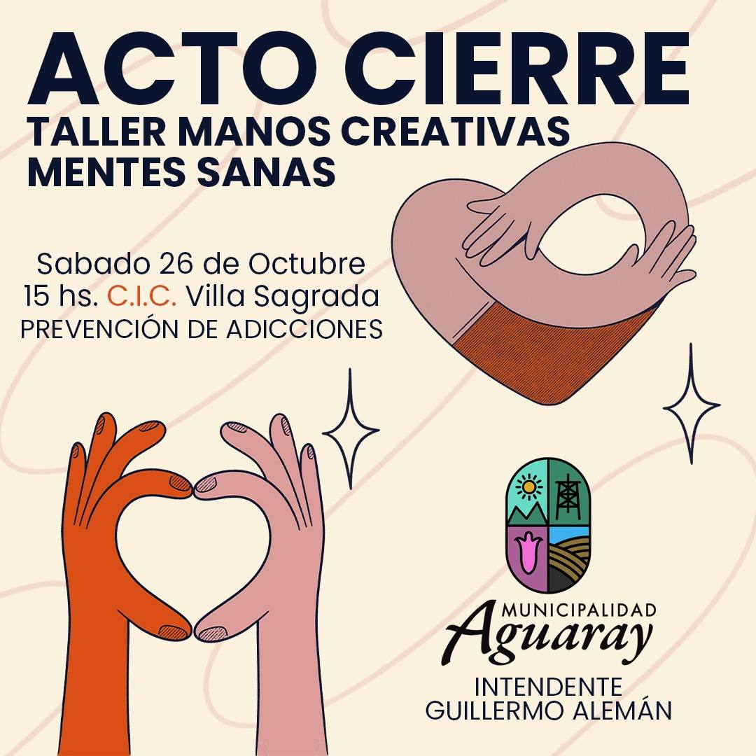 La Oficina de Prevención de Adicciones invita a participar del acto de cierre del taller “Manos Creativas, Mentes Sanas”, una iniciativa que contó con la participación de más de 50 niños del municipio. Este proyecto promovió la creatividad y el fortalecimiento de la convivencia sana mediante diversas actividades recreativas.