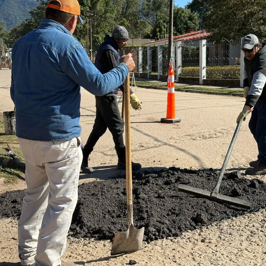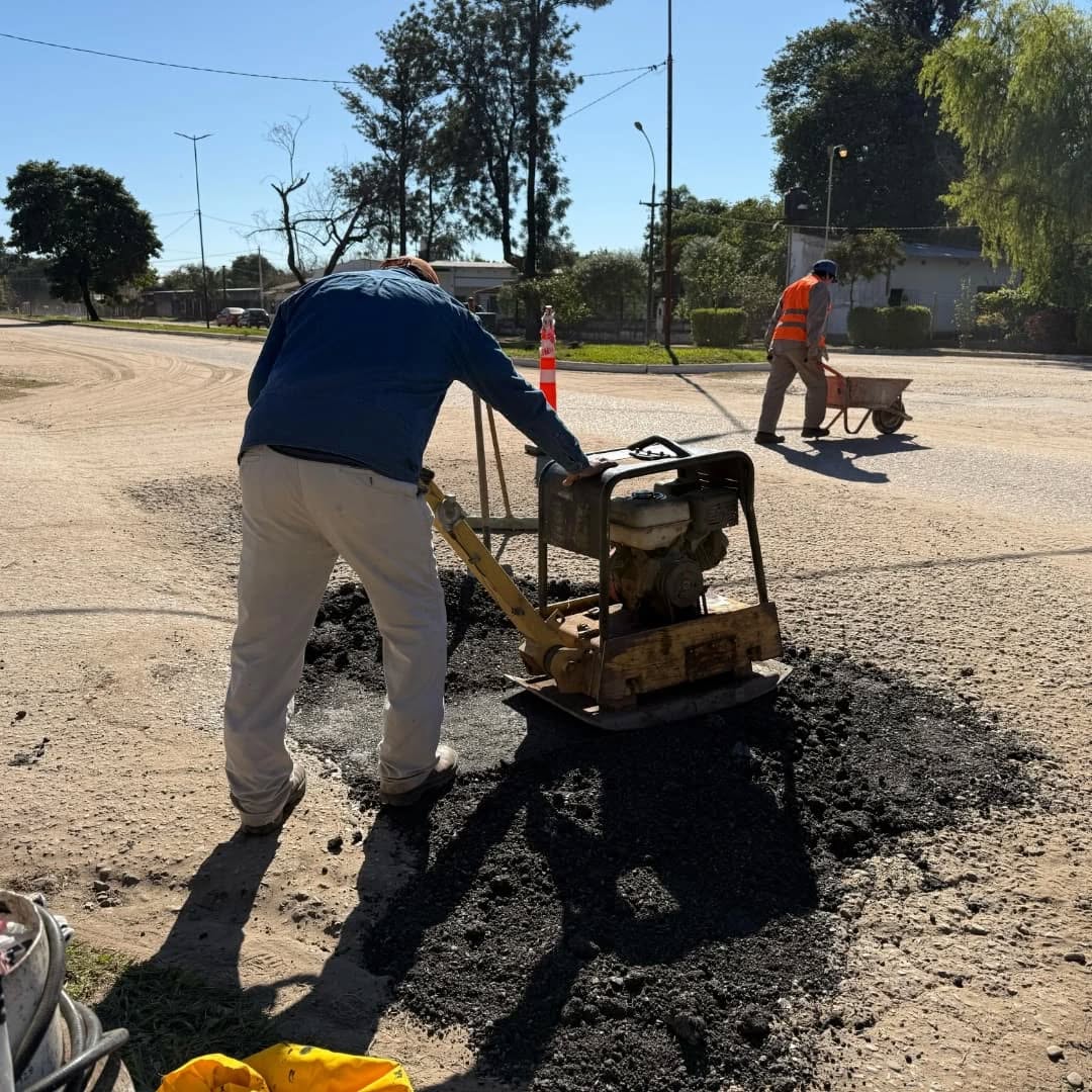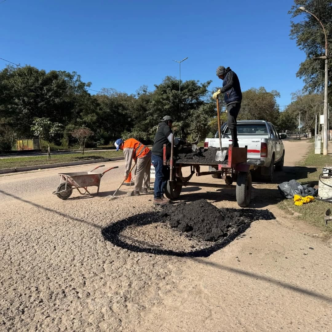 Personal de Obras Públicas, continúan con los trabajos de bacheos, durante la mañana realizan el mantenimiento en Av. Los Lapachos con intersección en calle los Cedros.