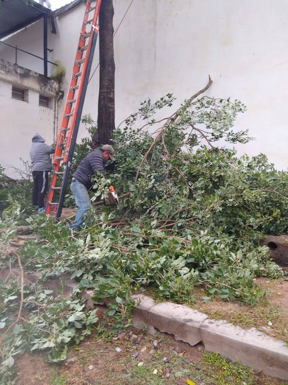 Personal de espacios verdes, continúa con las labores de mantenimiento en diferentes sectores. En la jornada de ayer, se realizó tareas de desmalezado y poda en: