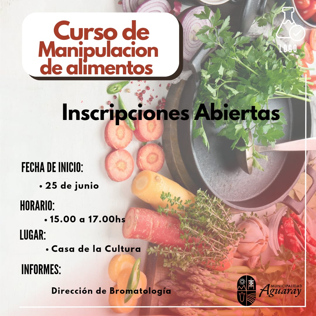 La Dirección de Bromatología convoca a los interesados en obtener sus carnets de Manipulación de Alimentos a inscribirse para la capacitación correspondiente al mes de junio. La misma iniciará el martes 28 y finalizará el día 28 del mes en curso con el examen final. Para mayor información pueden acercarse por la Oficina ubicada en Av. San Martín de 7 a 13 hs.