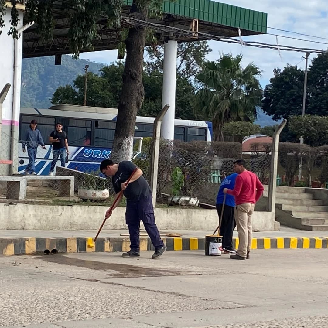El personal de Tránsito Municipal continúa con loa trabajos de demarcación de los cordones cuneta en la terminal de ómnibus, estableciendo las zonas restringidas y de uso exclusivos para el estacionamiento de vehículos.