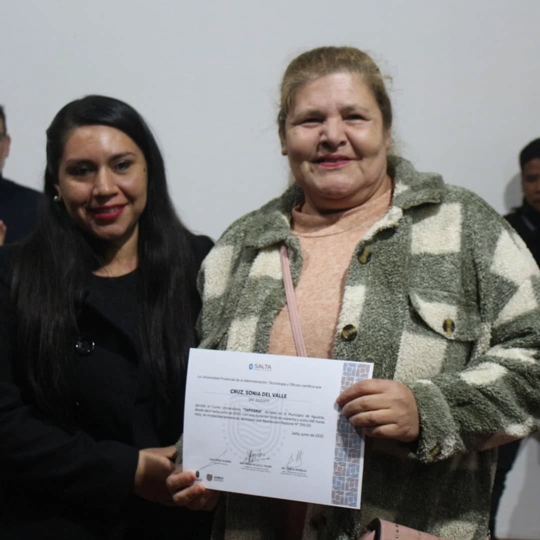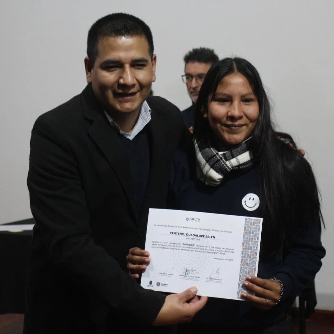El Intendente Municipal, Sr. Guillermo Alemán, junto al Rector de UPATECO, Sr. Carlos Morello, encabezaron la entrega de certificados a los asistentes que culminaron con éxito los cursos de Tapicería, Redes Sociales y Logística Minera. Estas capacitaciones fueron coordinadas a través de la Dirección de Producción Municipal, con el objetivo de brindar herramientas y conocimientos que fortalezcan las oportunidades laborales y el desarrollo personal de los participantes.
