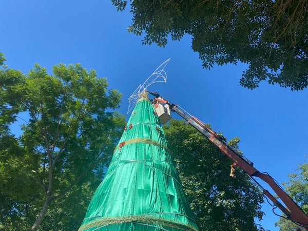 Como cada año, se están llevando a cabo los trabajos de ornamentación navideña en la Plaza Central, a cargo del personal de las áreas de Obras Públicas, Acción Social y Cultura.