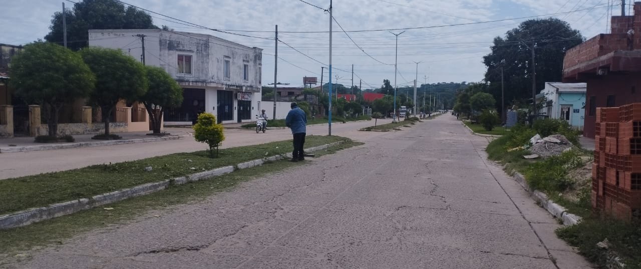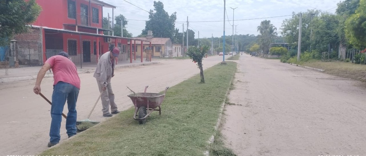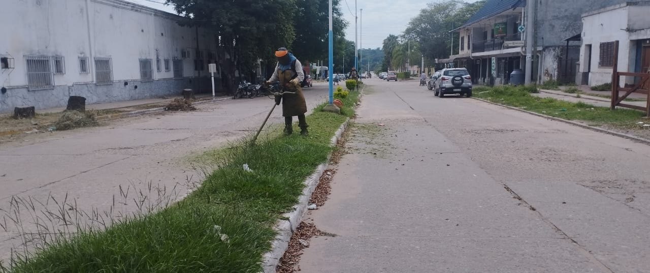 Personal de Obras Públicas continúa con las tareas de mantenimiento, en la jornada de hoy trabajan en el desmalezado y limpieza de platabandas a lo largo de la Av. Sarmiento.