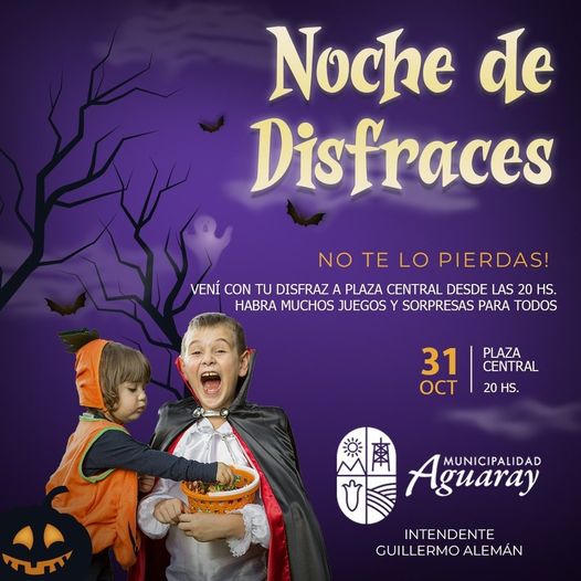 Este jueves 31 de octubre veni a disfrutar de la Gran Noche de Disfraces en la Plaza Central desde las 20:00 horas. Sumate con tu disfraz para ser parte de una velada llena de creatividad, diversión y muchas sorpresas.