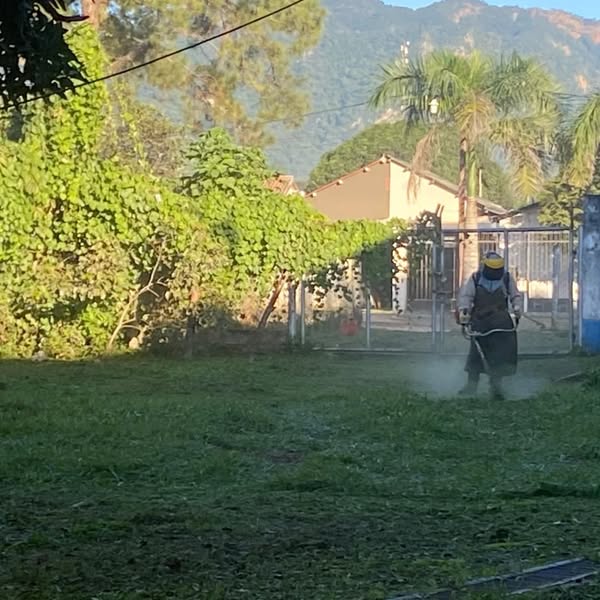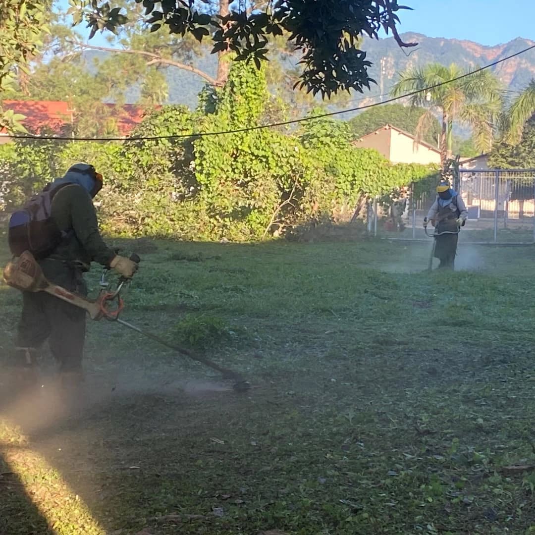 Personal de espacios verdes trabaja en la jornada de hoy en el mantenimiento de césped de edificios municipales entre Los que se destacan: casa de la Cultura y terminal. También se extiende la segunda etapa de desmalezado en el canal de Av Belgrano.