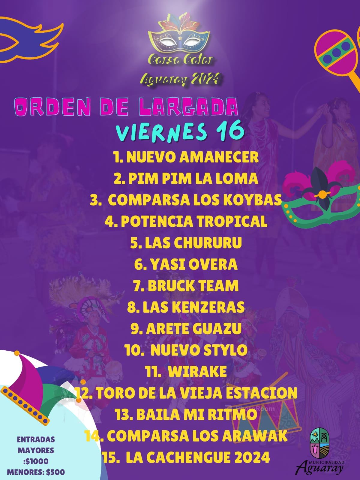 Hoy viernes arranca la primera noche del corso de Aguaray, Veni a pasar una noche de carnaval, te esperamos en diagonal 9 de Julio a partir 20:00 Hs.