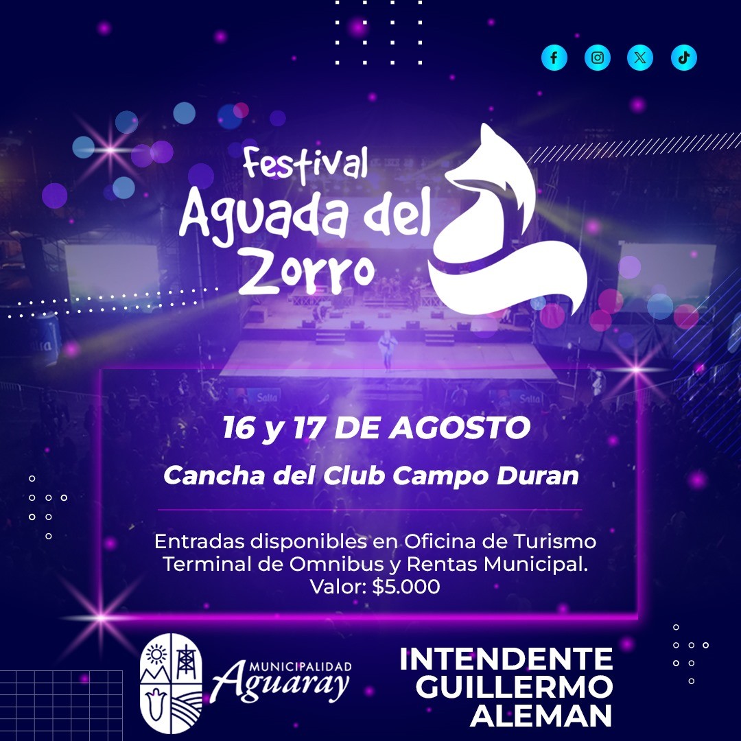 Se informa que las entradas para el Festival Aguada del Zorro 2024 están a la venta en los siguientes lugares: