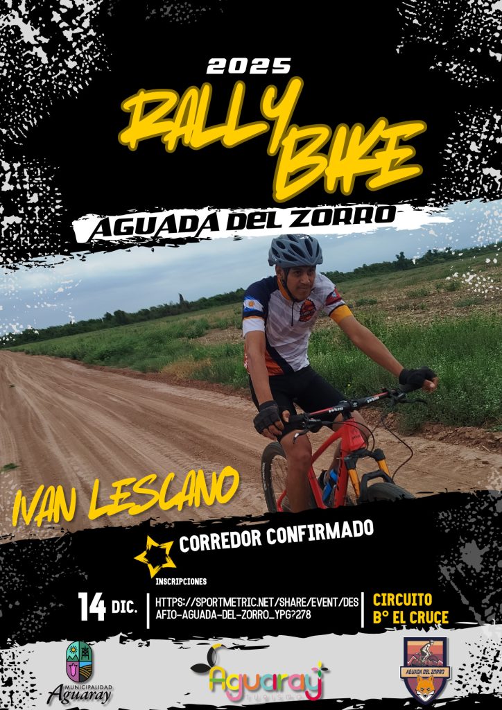 La Organización del Rally Bike “Aguada del Zorro” invita a los corredores de las distintas categorías a participar del Rally Bike 2025, que se desarrollará en el circuito del Barrio El Cruce, el día 14 de diciembre desde las 8:00 hs.