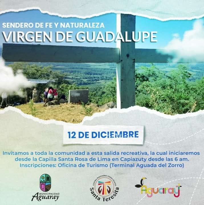 La Oficina de Turismo en conjunto con la Parroquia Santa Teresita invitan a toda la comunidad a participar de la Salida Sendero de Fe y Naturaleza – Virgen de Guadalupe, una actividad que combina espiritualidad y contacto con la naturaleza.