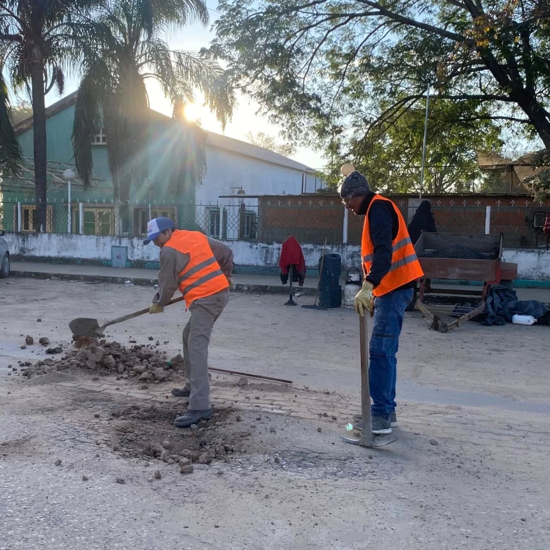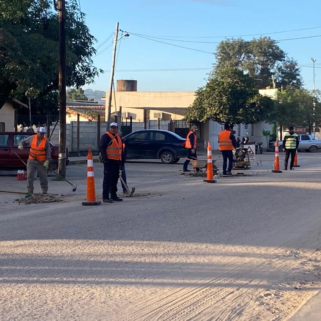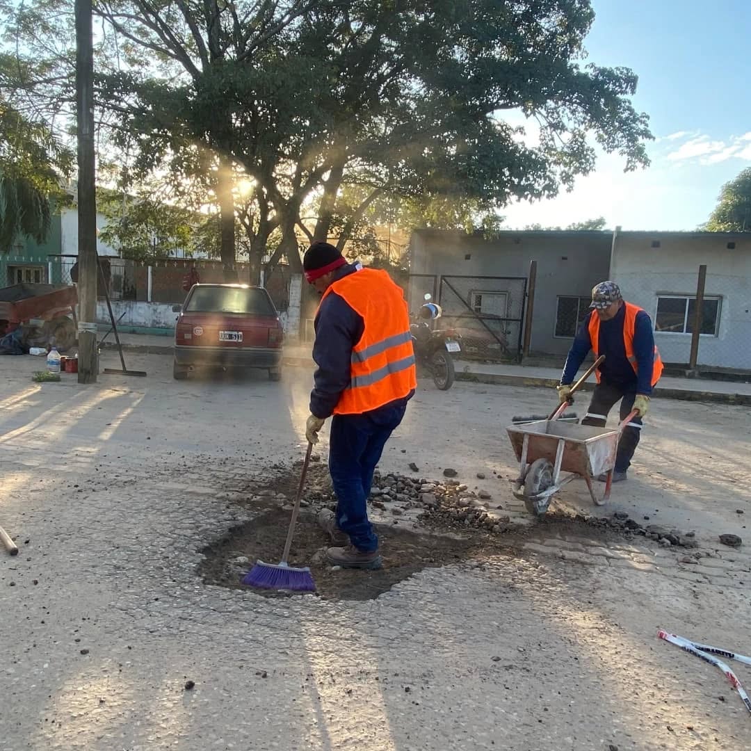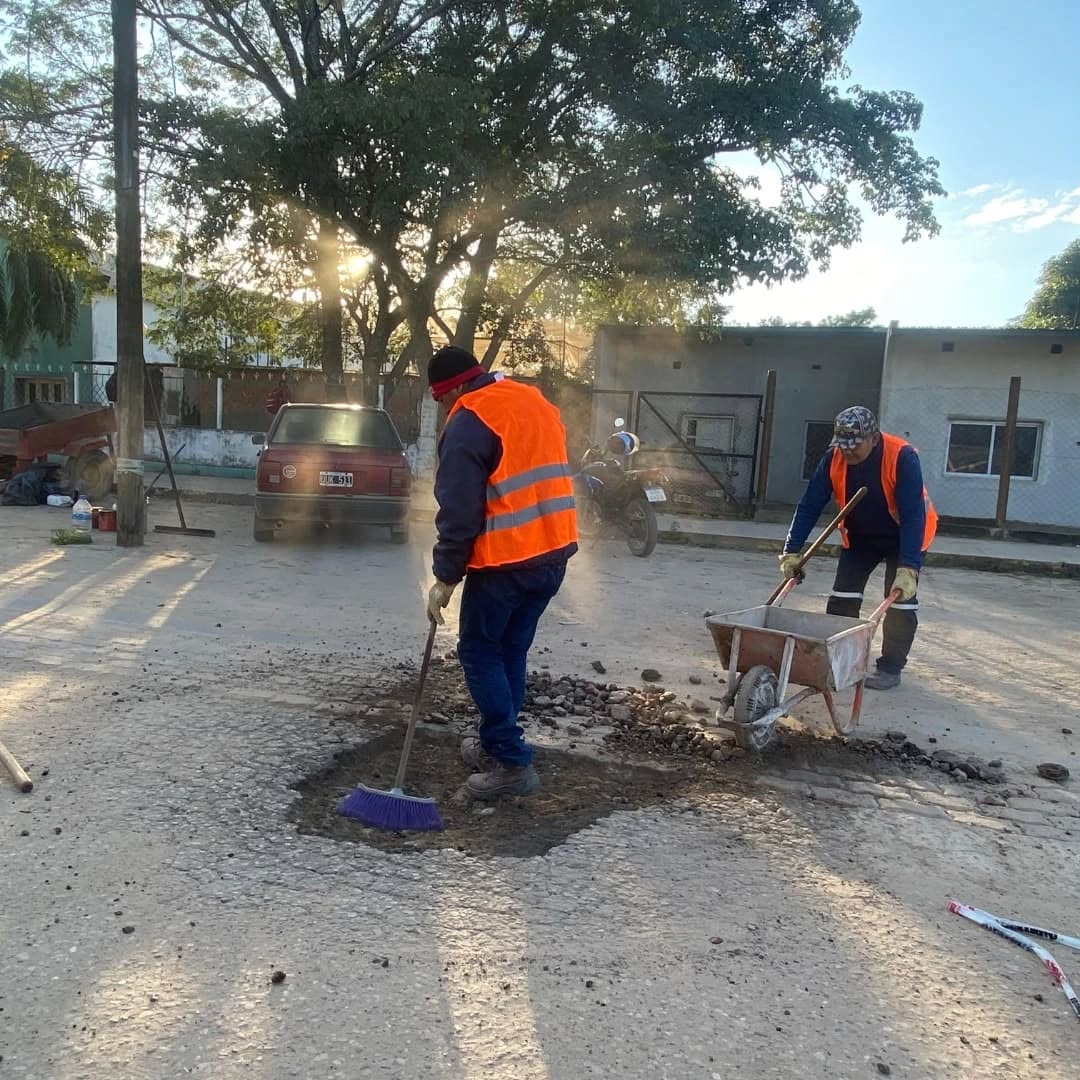 Continúa durante la jornada de hoy los trabajos de bacheo y recambio de cinta asfáltica por material bituminoso en Av. Los lapachos en inmediaciones a terminal de ómnibus “aguada del zorro”.