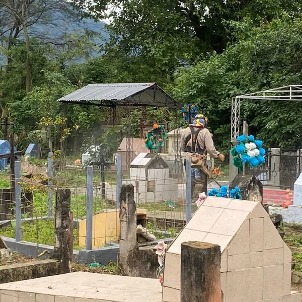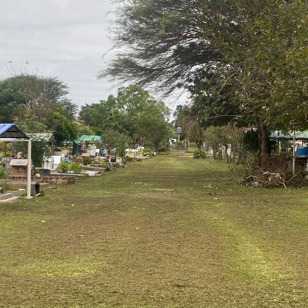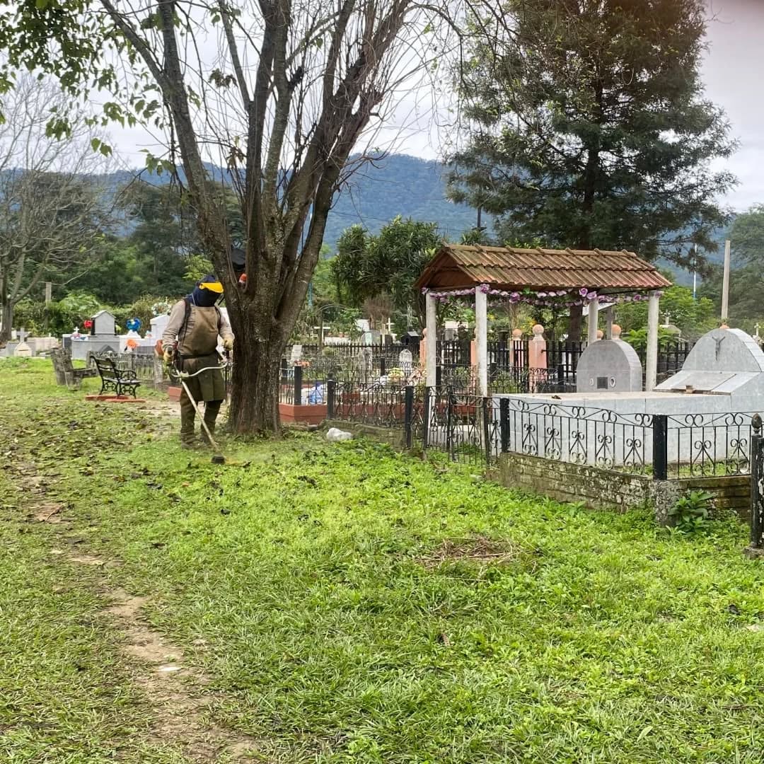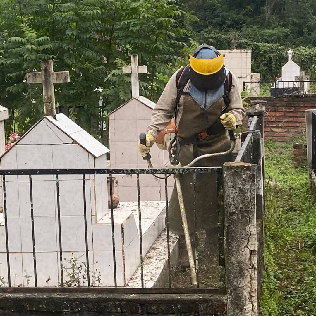 Personal de espacios verdes, lleva a cabo la segunda etapa de trabajos de desmalezado en el cementerio local. Tareas fundamentales para mantener en condiciones los espacios importantes de la comunidad.