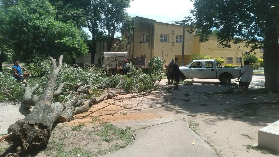 Esta mañana, personal de Obras Públicas trabajó intensamente en la remoción de un árbol caído en el Paseo Juan Carlos Alcoba. La labor se realizó con el compromiso de garantizar la seguridad y el acceso a barrio Villa Sagrada.