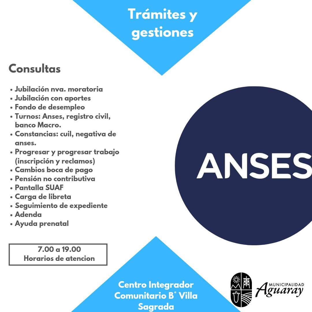 Además, les recordamos que en esta oficina también pueden realizar diversos trámites relacionados con ANSES, tales como: