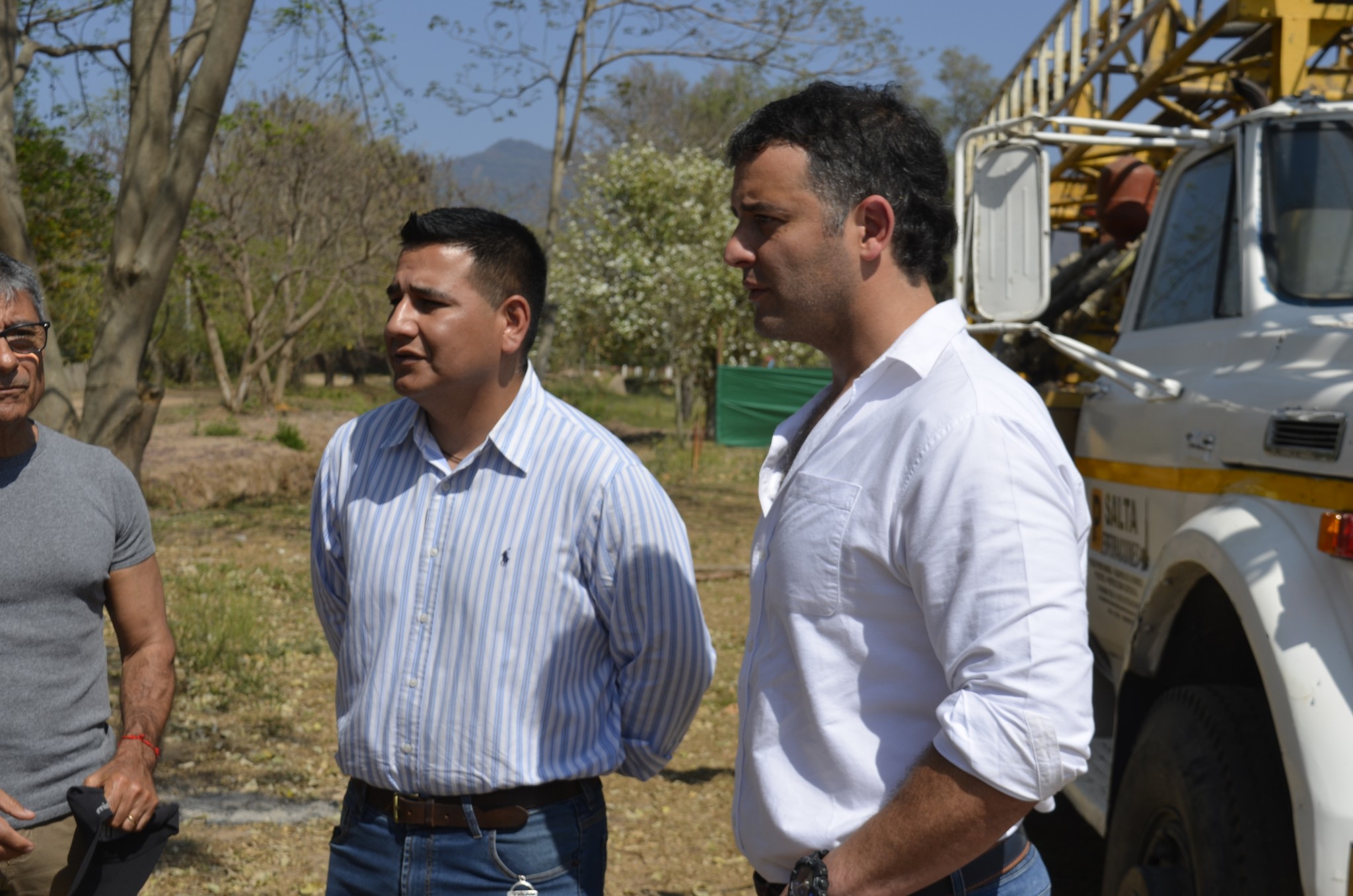 Durante la jornada de ayer, el Intendente Municipal Sr. Guillermo Alemán acompañado del Gerente de Aguas del Norte, Sr. Ignacio Jarsún, visitaron el sitio donde se llevará a cabo la obra de ejecución del tercer pozo de agua. Esta obra, que se iniciará en inmediaciones de la Plazoleta de los Sueños, a fin de fortalecer el sistema de abastecimiento de agua potable para la comunidad.